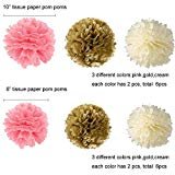 -12 * Tissue paper pom poms (8″&10″,each size has 2* 3 different colors-pink,cream&gold )