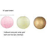 -6 * Paper lanterns (10″ has 2* 3 different colors-pink,cream&gold )