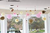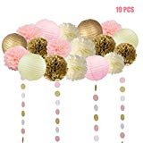 - WHAT YOU GOT: 12 tissue paper pom poms(8 inch-2* Pink+2* Cream +2* Gold,10 inch-2* Pink+2* Cream +2* Gold);6 paper lanter(10 inch-2* Pink+2* Cream +2* Gold);1 * 10 feet circle dots paper garland.This party set are perfect for decoration your special occasion.