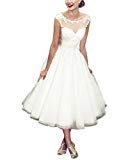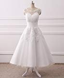 APXPF Women’s Elegant Sheer Vintage Tea Length Lace Wedding Dress for Bride