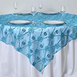 - Accent up your party tables with affordable 72″ x 72″ sequined flowers on lace table overlays and create a gorgeous display!