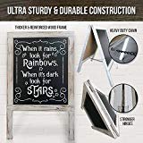 • ✅ DECORATIVE WOODEN HANDCRAFTED AESTHETIC: Don’t settle for those other cheap looking standing signs – our hardwood frame has a white-stained and distressed artisan crafted look that puts those other Amazon chalkboards to shame. Enjoy not just a message board but an incredible furniture-matching piece of décor to fit your ambience.