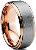 • Charming Jewelers presents with this classic brushed grey top step edge tungsten carbide band featuring with 18k rose gold plated in a 8mm width. This luxurious 18k rose gold ring is perfect to use for marriage or a dressy piece of upscale jewelry.