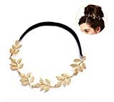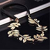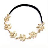 - CLASSIC DESIGN: Lovely and romantic. Gold metal leaves on headband compliments any hair color and style for any occasion. Stretchable and adjustable black strap to hold all of your hair in place. Headband is ideal for all hair styles – long hair, short hair, bun, hair up or down, braids, pony tail, etc.