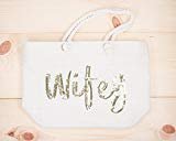 - “Wifey” is professionally embroidered with high quality gold sequin embroidery , and this wedding bride tote bag is carry and roomy enough to handle all of your necessities on your wedding day