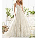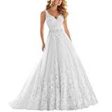 Fair Lady Lace V Neck Wedding Dress Beaded Bridal Dresses Appliques Straps Wedding Gown