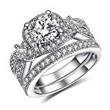 - Elegant French pavé-set CZ adorn this glamorous matched set. Dazzling AAA Grade CZ decorate the 7*7mm prong-set cushion cut halo and band of the engagement ring as well as the matching band!