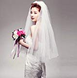 Simple Tulle White Two Layers Wedding Veils Ribbon Edge Comb Wedding Accessories Short Bridal Veil
