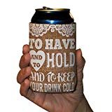 - KEEP YOUR DRINK COLD and your hand warm! Bottom acts as coaster, preventing rings on furniture. It also is collapsible for easy storage. They are made of thick neoprene that insulates the coldness more effectively and give you a better grip on the can. Works with most 12-16 ounce cans, bottles, longnecks, and water bottles. This vintage wedding set comes complete with 25 rustic Can Coolers that are customizable with your name and date!